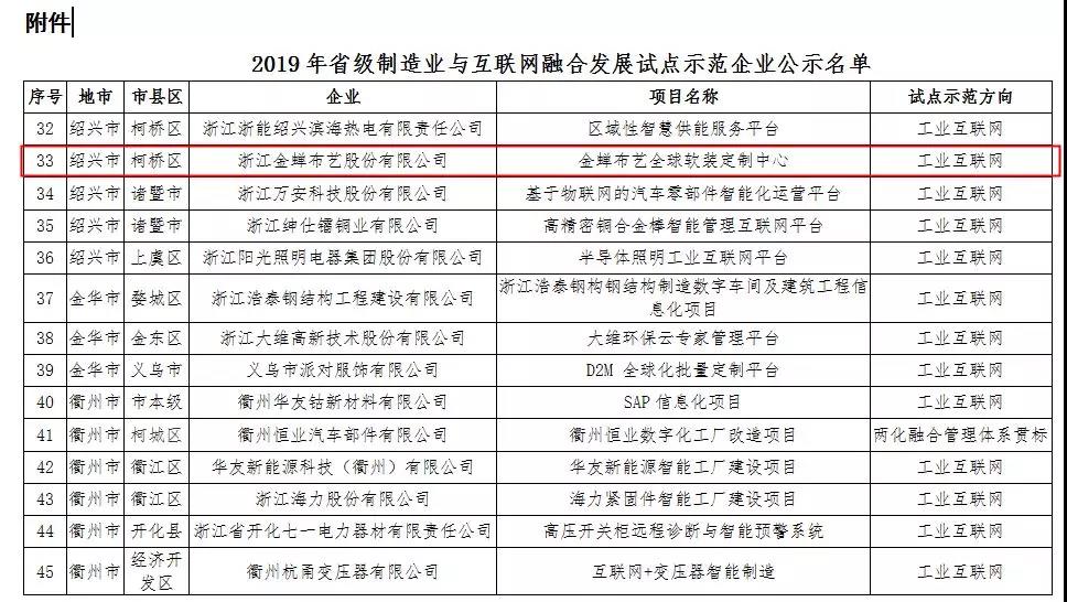- 豆奶下载布艺成为2019年省级制造业与互联网融合发展试点示范企业 2019-10-12